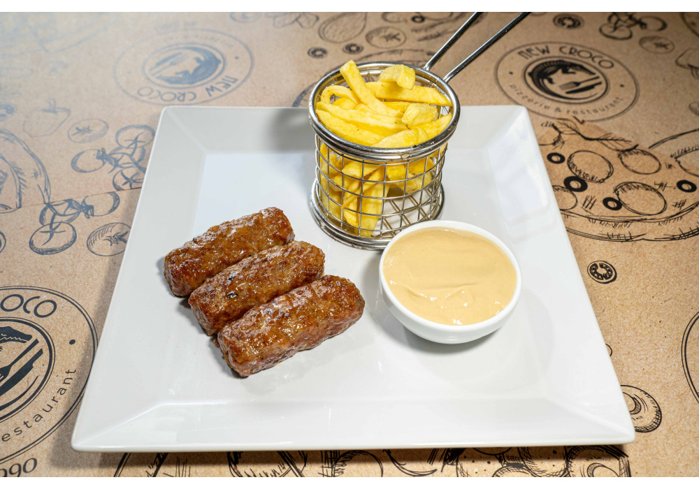 mititei 3 buc, cartofi prăjiți, muștar, pâine, bere sau răcoritoare